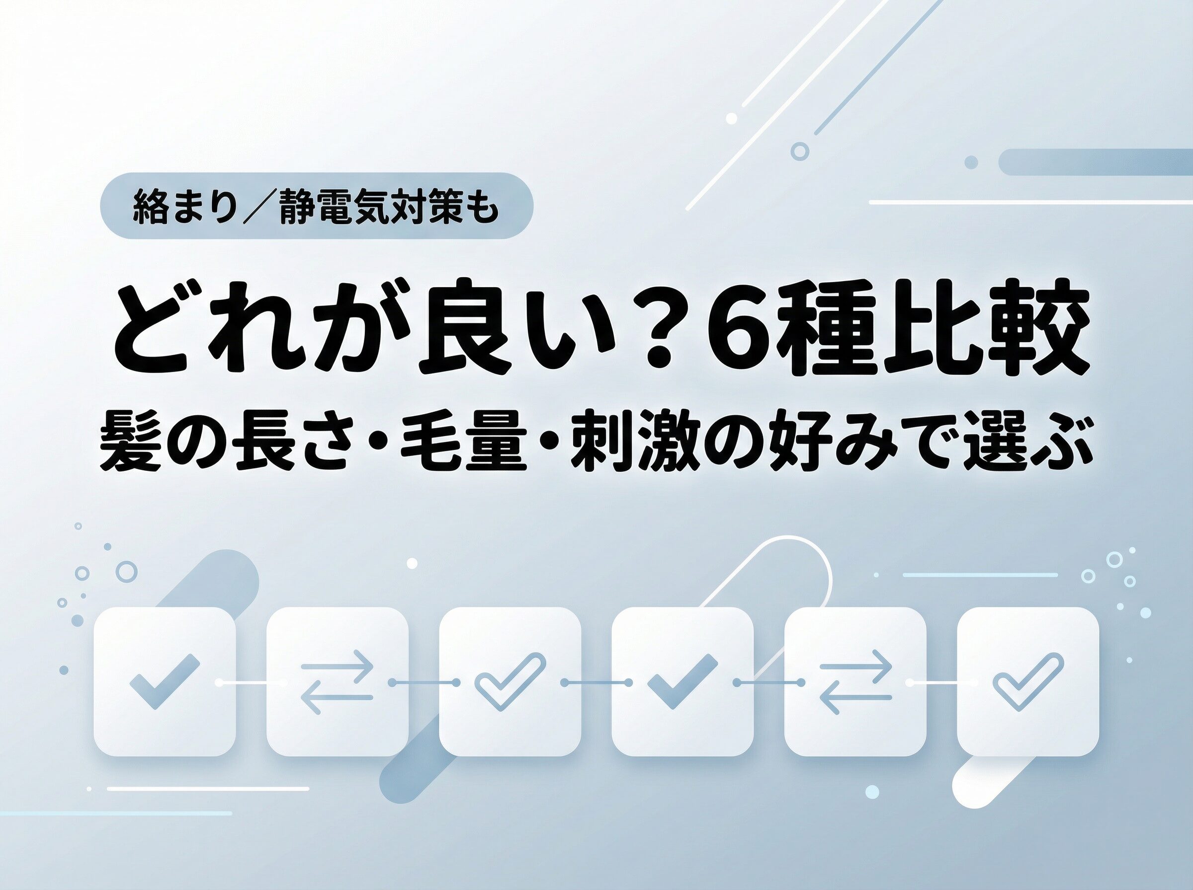 そこに、絡まりやすさ・静電気・頭皮の敏感さを加えると、あなたに合う範囲が自然に絞れます。